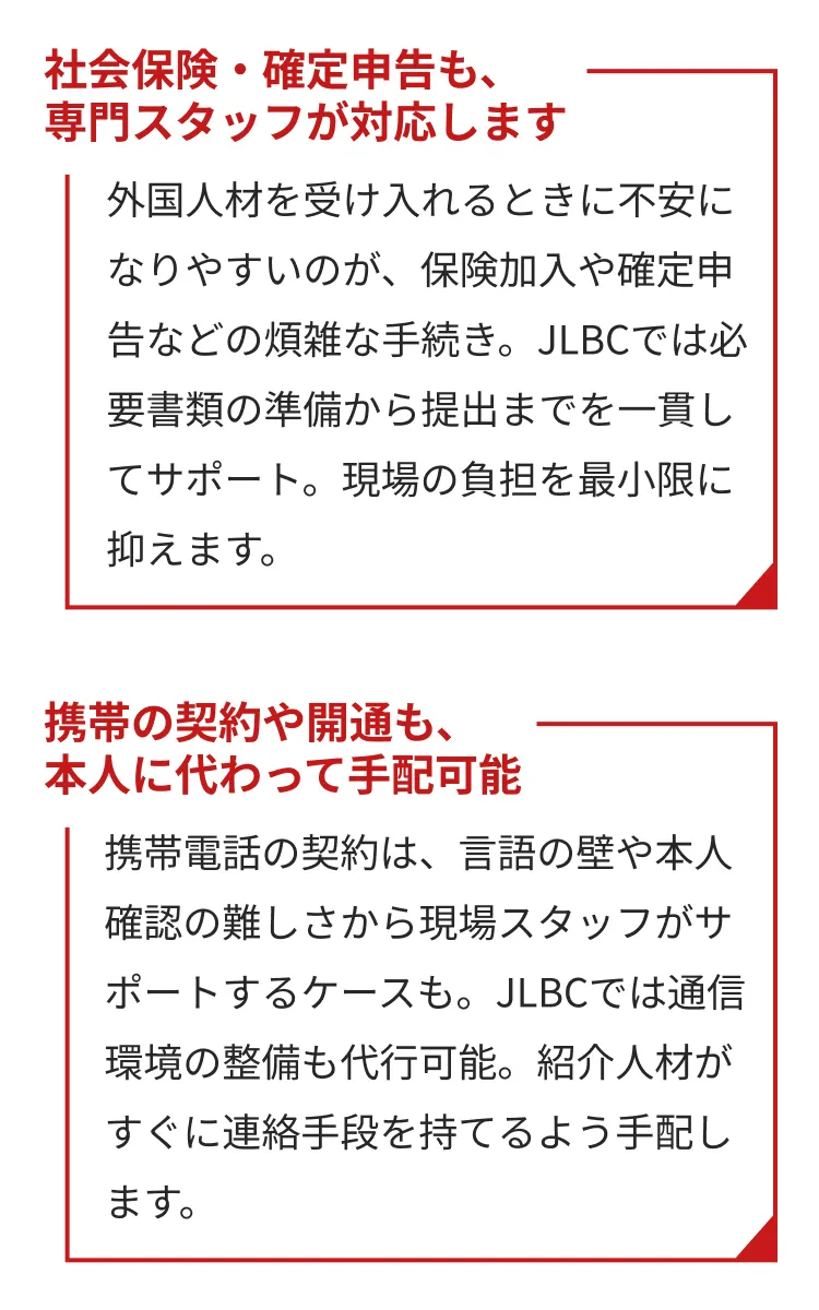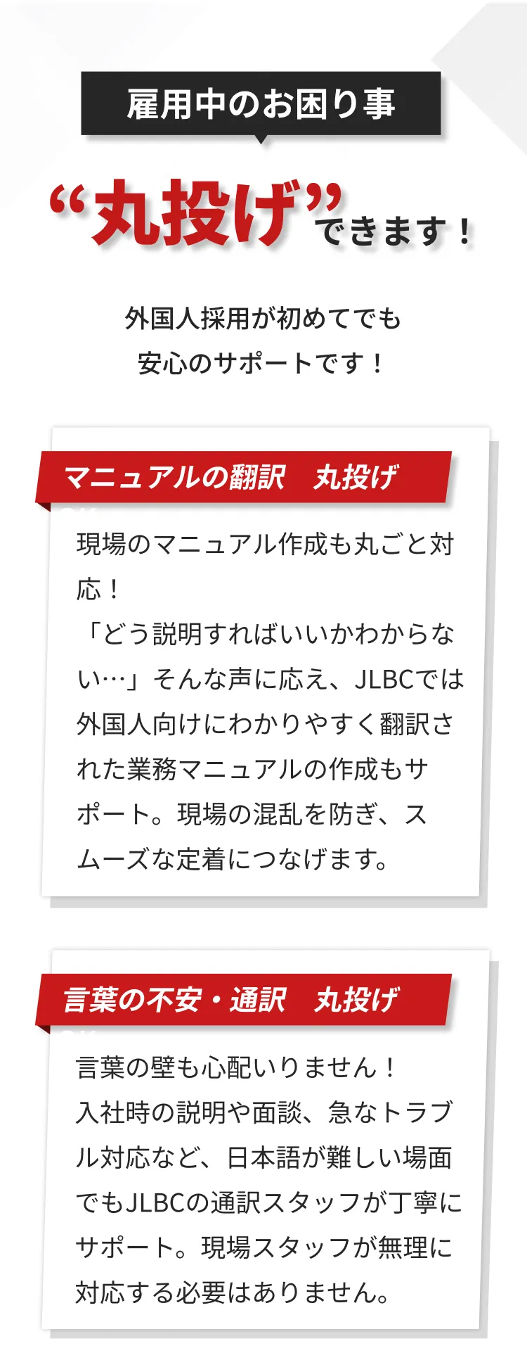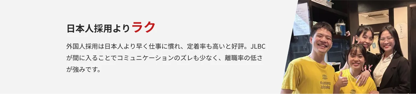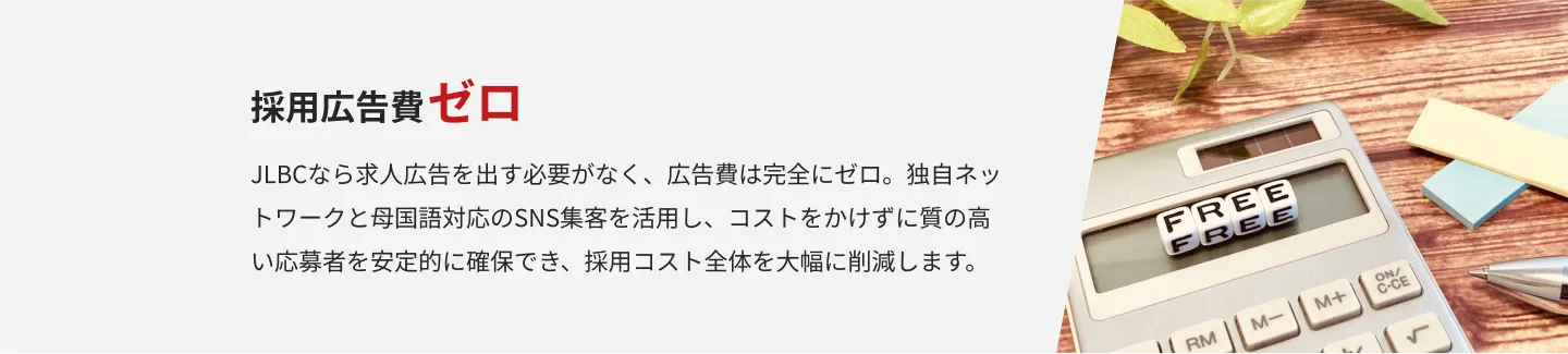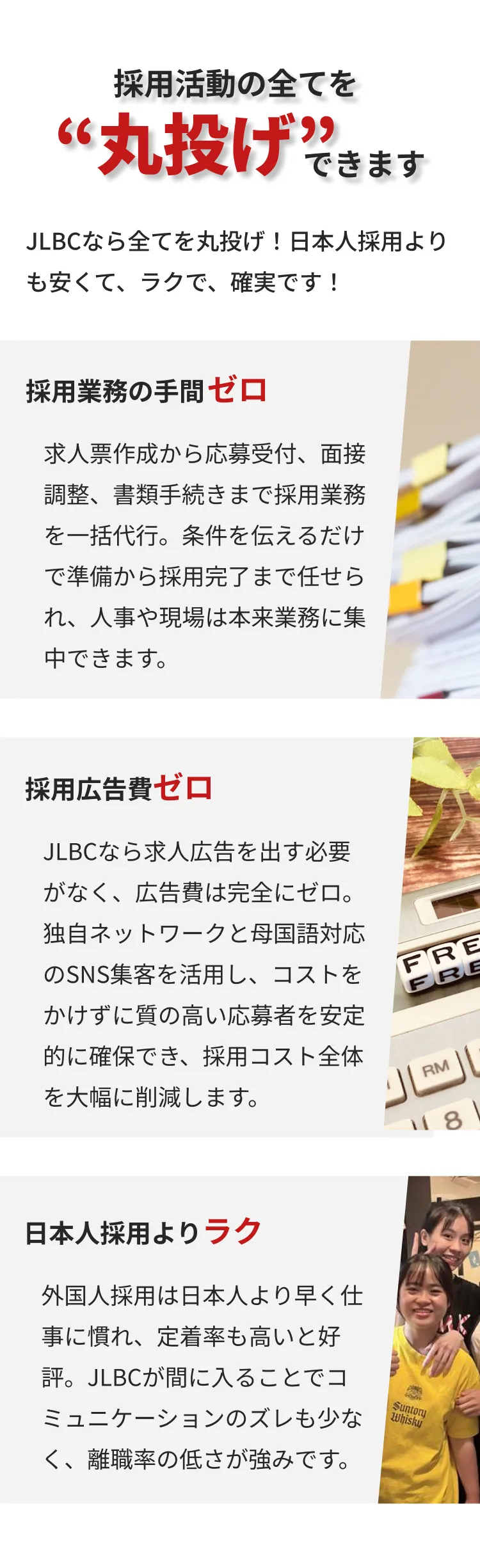 JLBCなら全てを丸投げ!日本人採用よりも安くて、ラクで、確実です!