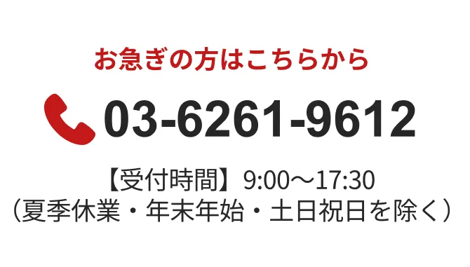 【受付時間】9:00~17:30(夏季休業・年末年始・土日祝日を除く)