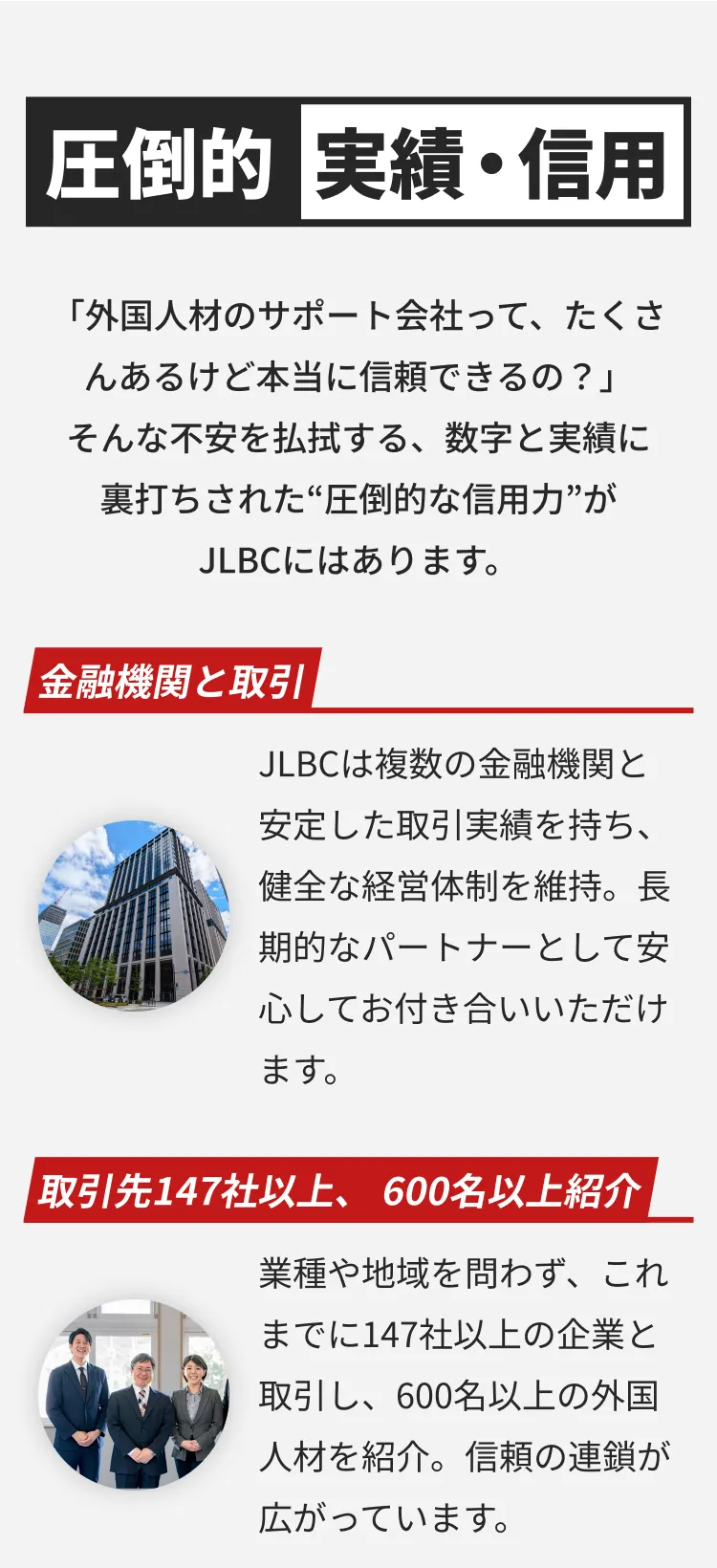 そんな不安を払拭する、数字と実績に裏打ちされた“圧倒的な信用力”がJLBCにはあります。