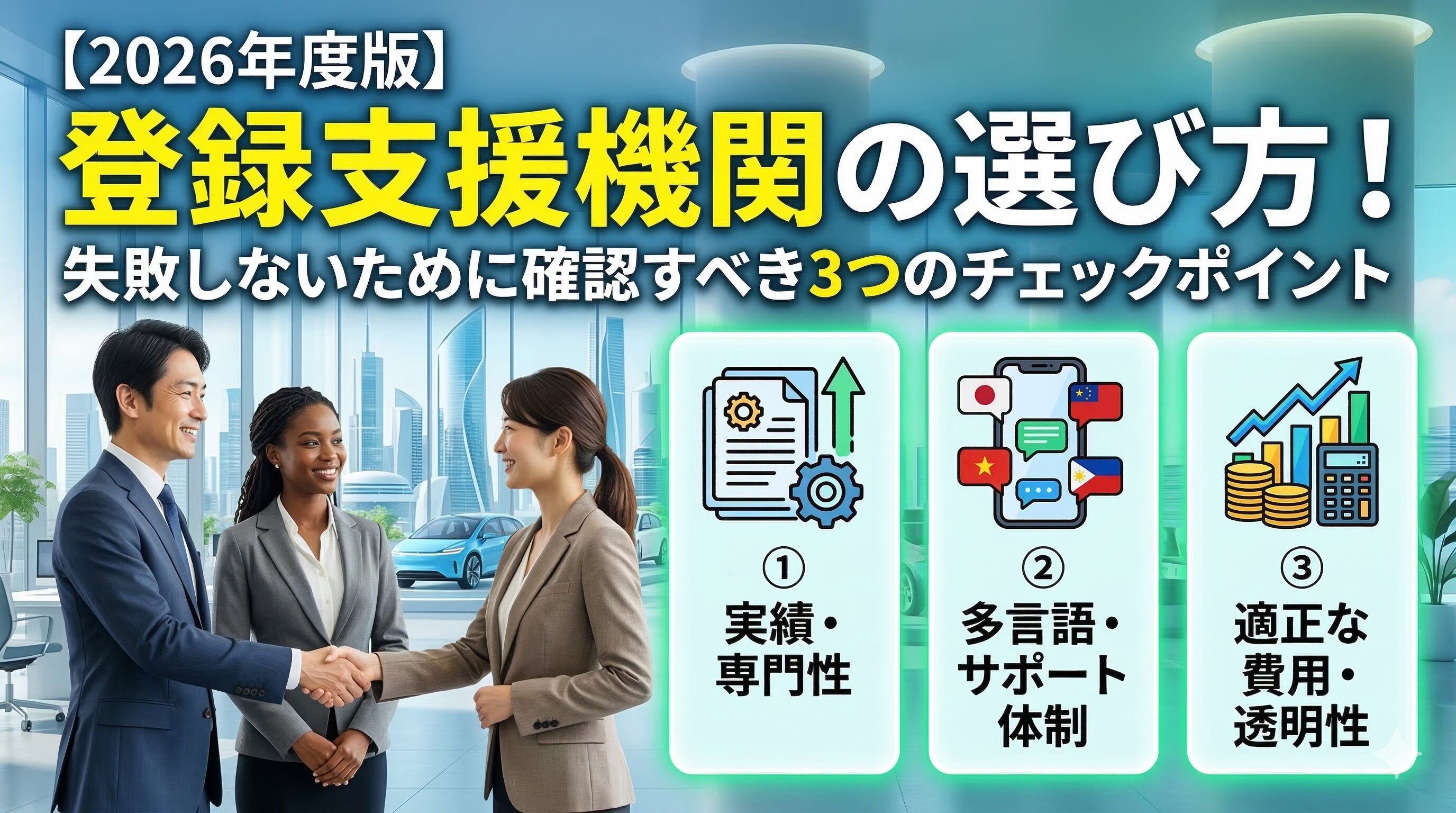 本記事では、2026年最新のリサーチに基づき、登録支援機関選びで失敗しないための「3つのチェックポイント」を、6,000字を超える圧倒的なボリュームと専門的知見から徹底解説します。2027年の育成就労制度を見据えた「勝てる人材戦略」を構築するための決定版ガイドとしてご活用ください。